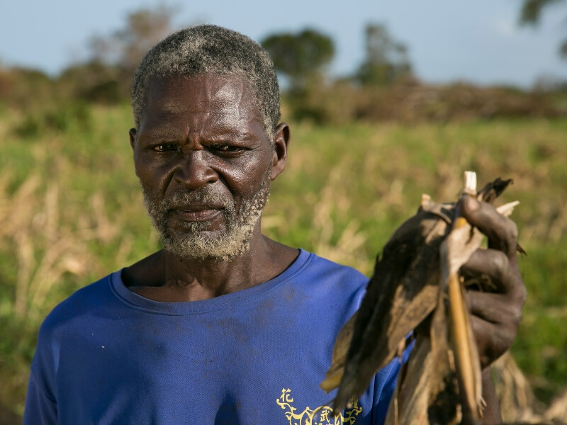 “Às duas da madrugada, os ventos tornaram-se muito fortes e em apenas duas horas toda a região ficou inundada. Uma das paredes da nossa casa caiu em cima da minha mãe, que é mais velha, e partiu-lhe a perna. Tivemos de levá-la por uma colina pelo meio da água e na escuridão até uma estrada principal, que estava um pouco mais elevada […]. Eu planto milho, sorgo, sésamo e amendoins […], tentei salvar tudo o que podia, mas não pudemos aproveitar nada. Tenho que deitar tudo fora e preciso de alimentar a minha mulher, a minha mãe, as minhas duas filhas e os meus cinco filhos. Este ia ser um bom ano, todos esperávamos uma boa colheita, mas agora perdemos tudo”.